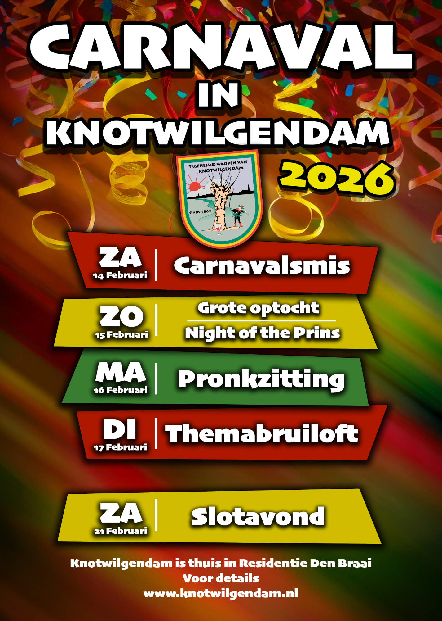 Carnavalsvereniging Knotwilgendam bestaot sinds 1862. Daormee is ons carnavalsclubke een van d’n oudste in heul ‘t laand. Wie wit, misschien wel d’n oudste! Dè betekent nie dè wij ut digitaole tijdperk maor laoten veur wè’tet is… Hier kunde dan ok alles vinden over Knotwilgendam, hoe’t vruuger waar en wè wij ieder jaor wir organisere. Ge bekèkt ut mar is op oew gemak!